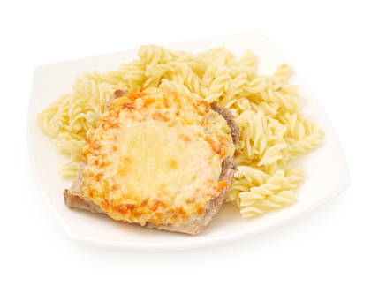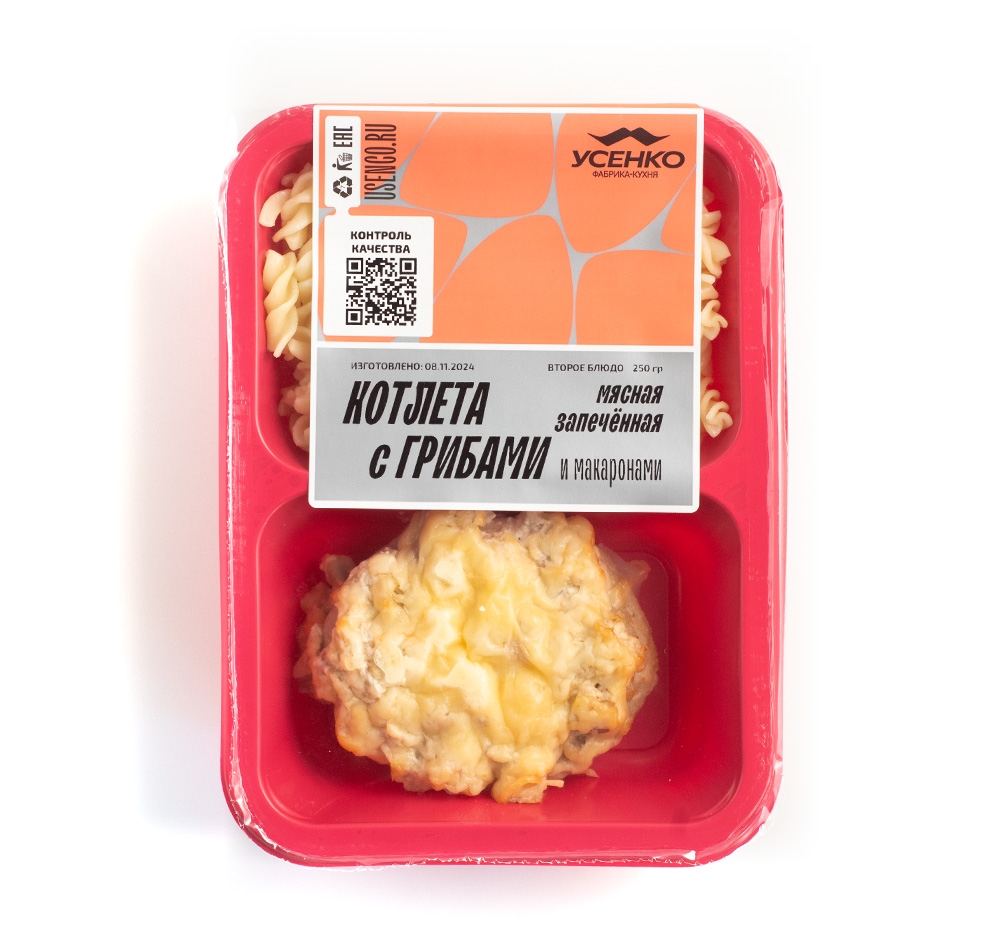 КОТЛЕТА МЯСНАЯ ЗАПЕЧЕННАЯ С ГРИБАМИ И МАКАРОНАМИ
