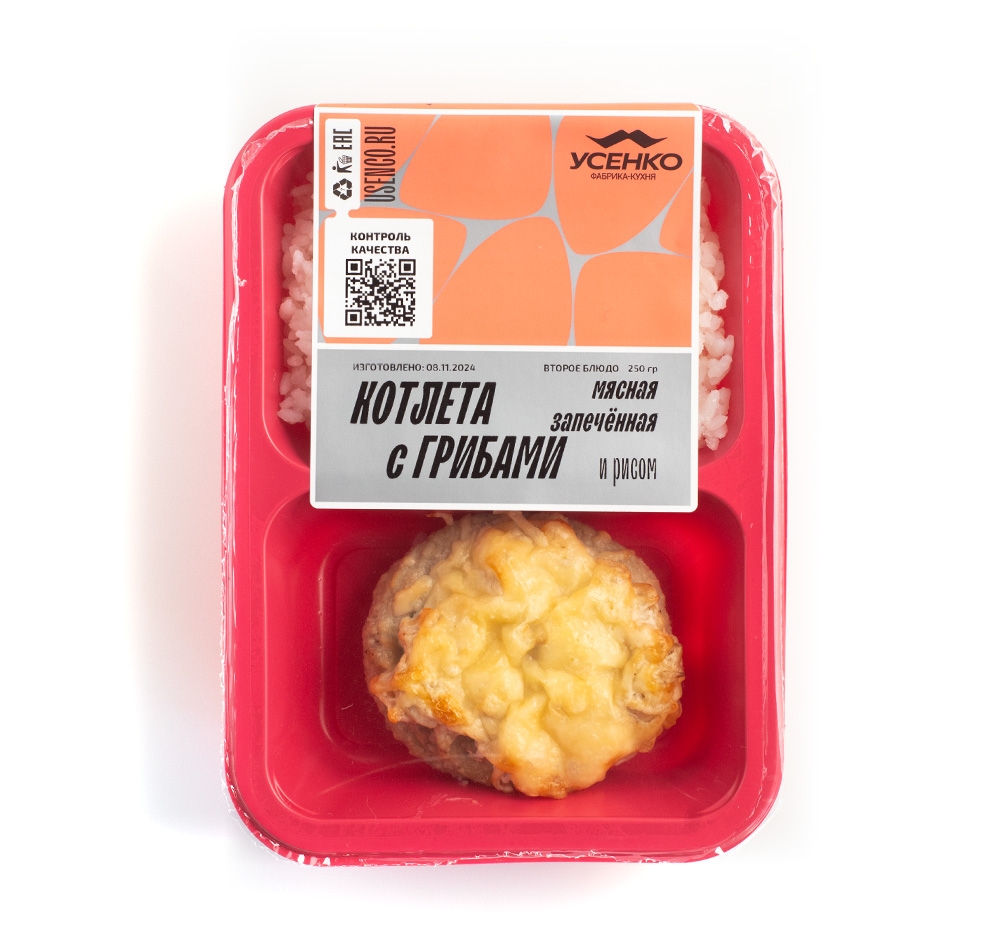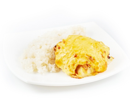 КОТЛЕТА МЯСНАЯ ЗАПЕЧЕННАЯ С ГРИБАМИ И РИСОМ