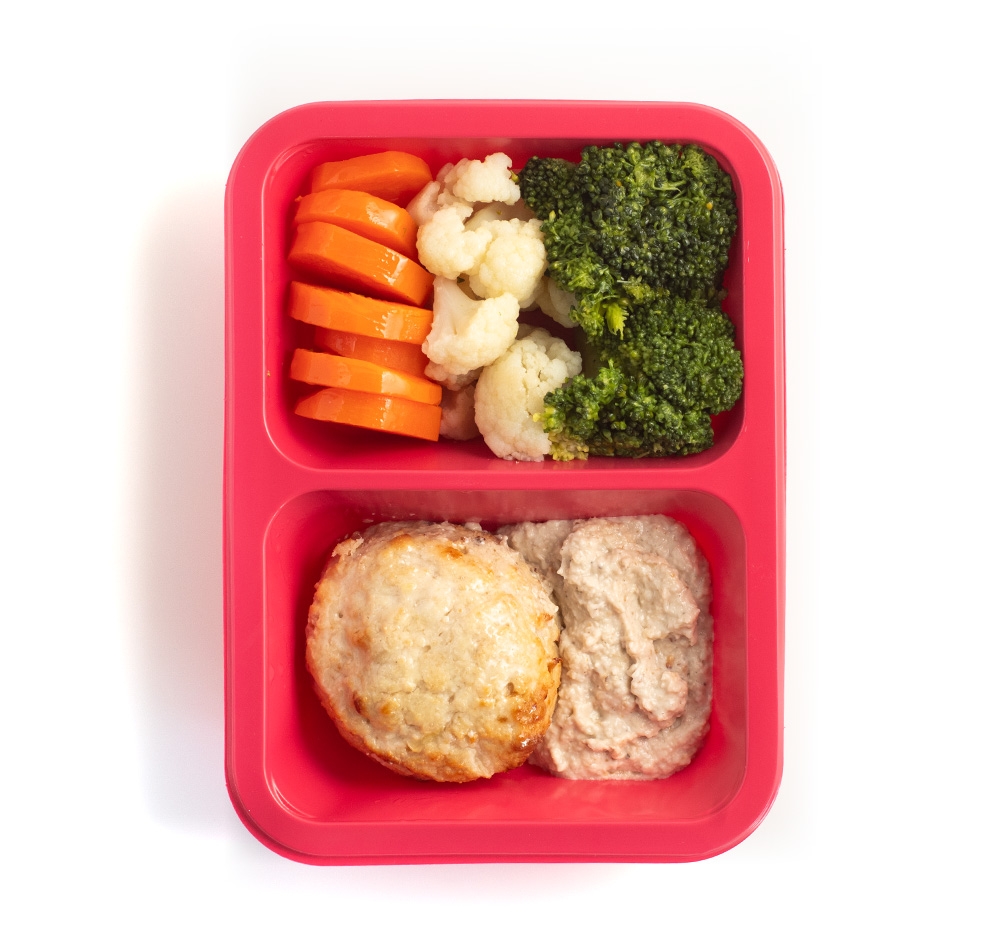 БИТОЧЕК КУРИНЫЙ С ГРИБНЫМ СОУСОМ И ОВОЩАМИ
