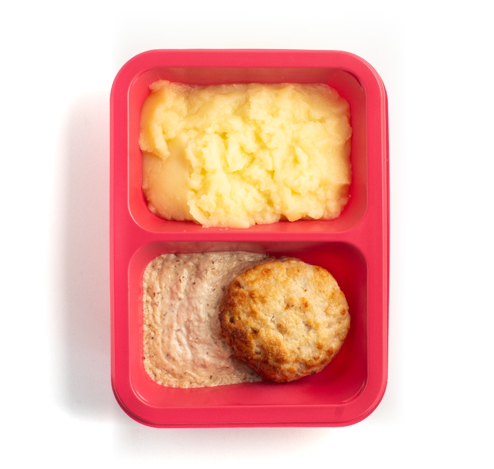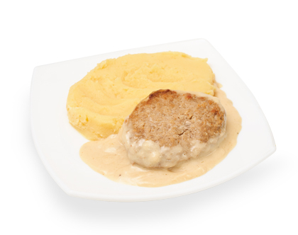 БИТОЧЕК КУРИНЫЙ С ГРИБНЫМ СОУСОМ И ПЮРЕ